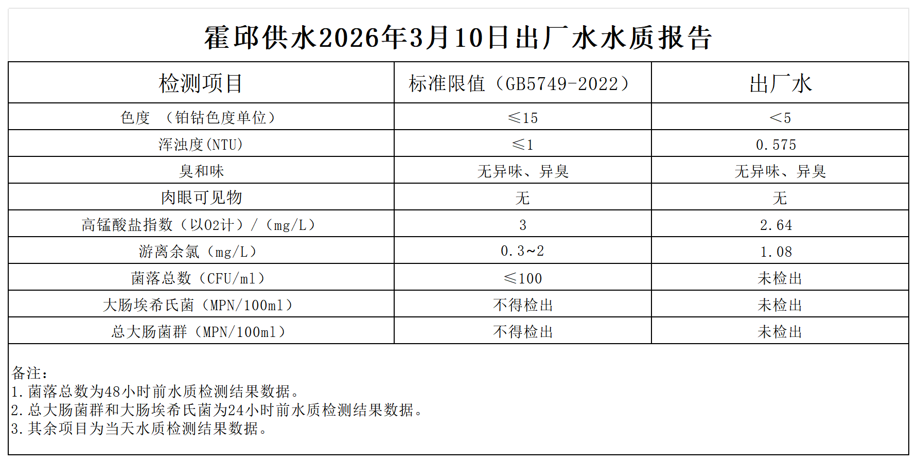 您现在的位置: 首页 - 通知公告 - 水质公告 - 出厂水水质(9项) - 2026年3月10日出厂水水...