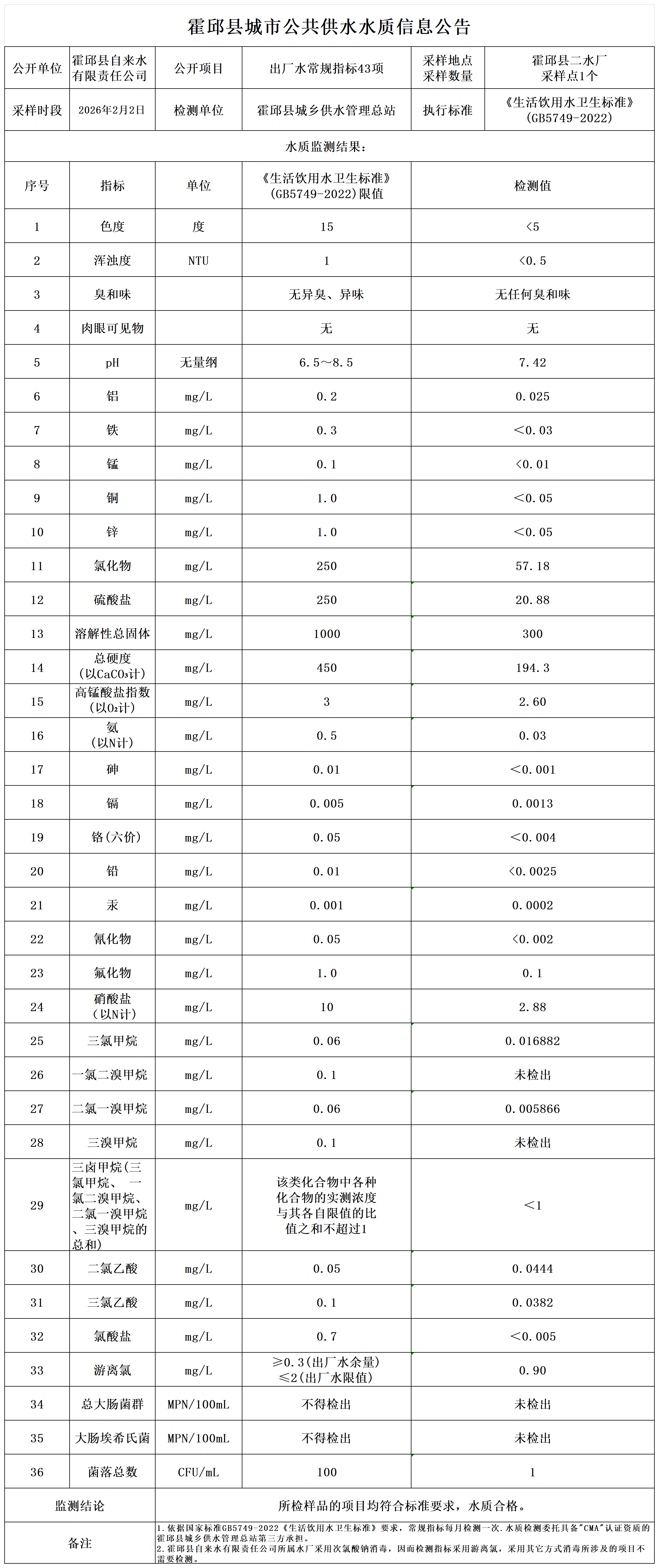 2026年2月出厂水水质(43项)